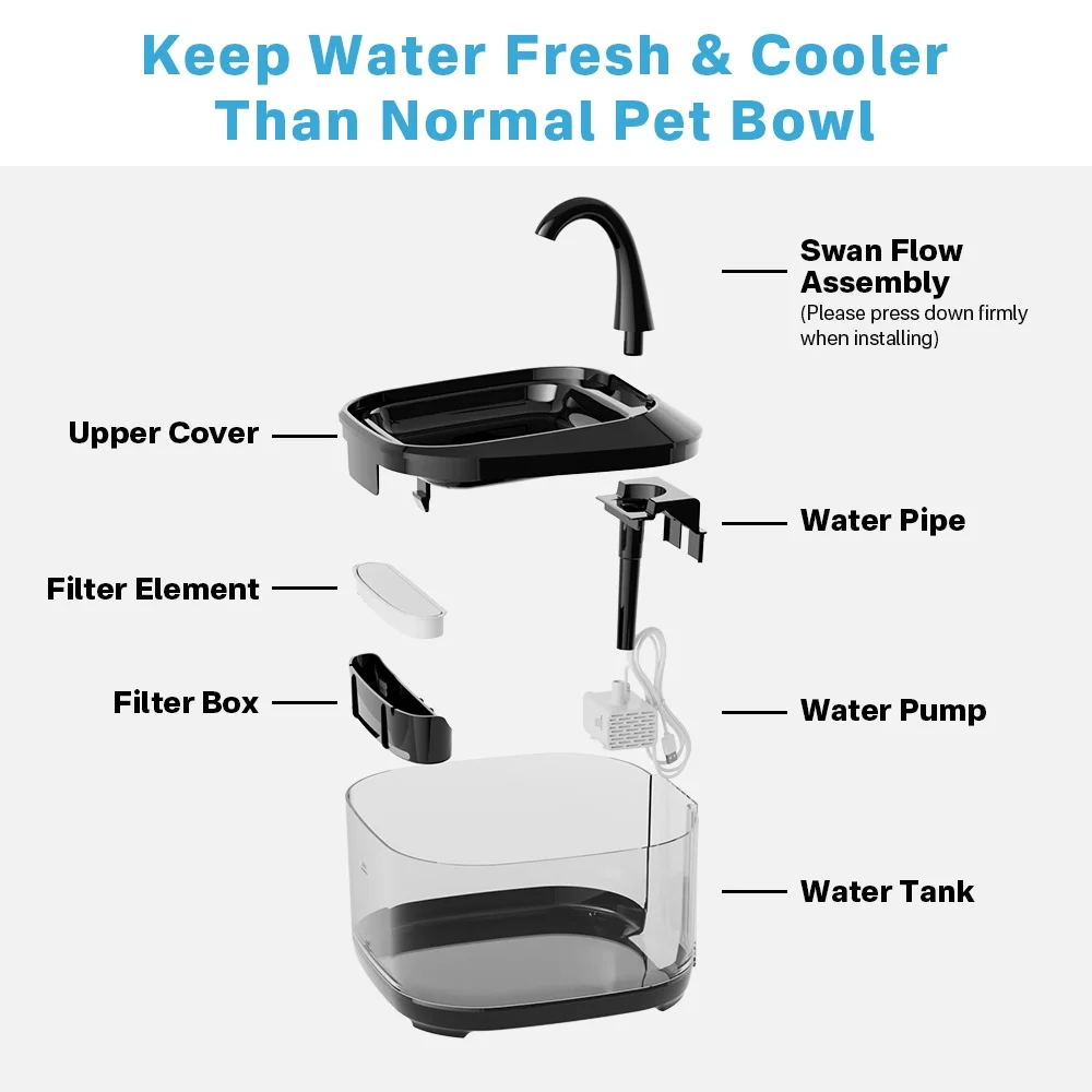 - The water tank is 4.5 liters and the available water capacity is 3.2 liters, which can meet your pet's drinking needs for up to 8 days