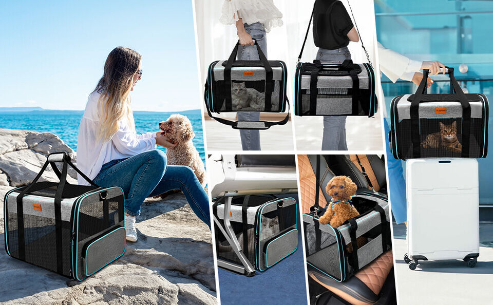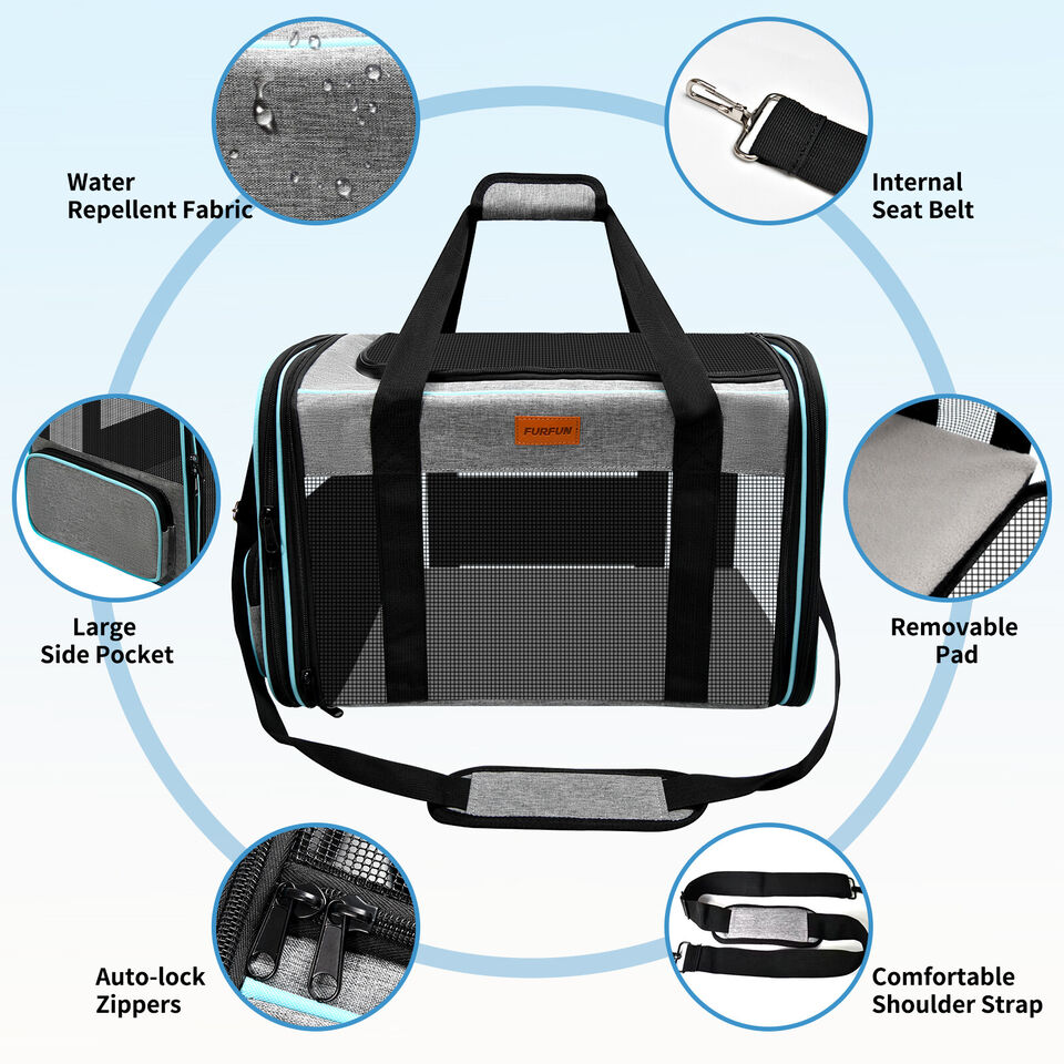 AIRLINE-APPROVED PET CARRIER - Featuring a soft-wire frame and fiberglass support rods that can be pushed down to conform to most under-seat airline requirements without compromising your pet's safety or comfort.