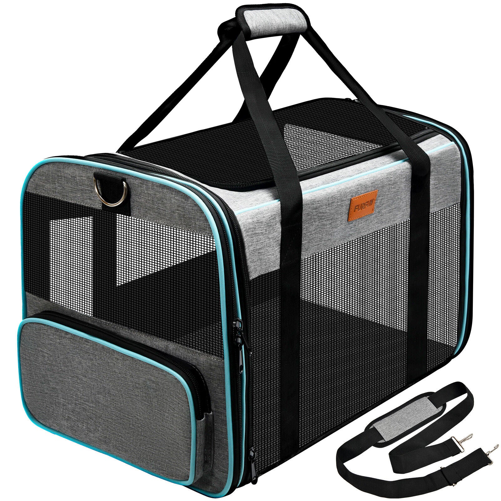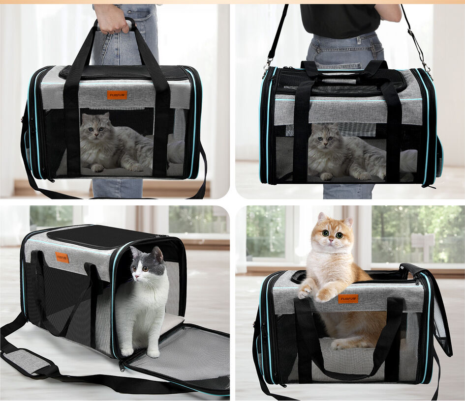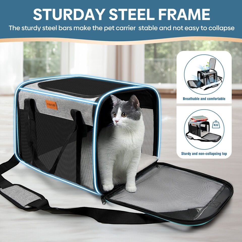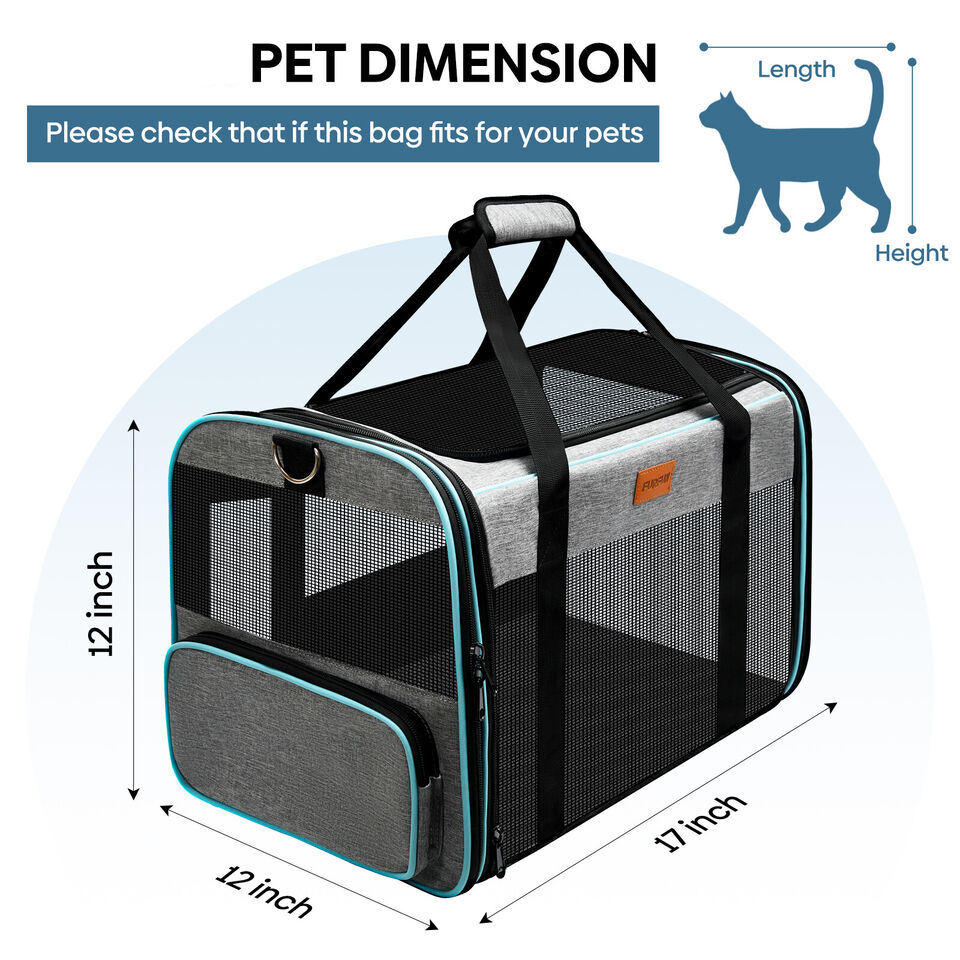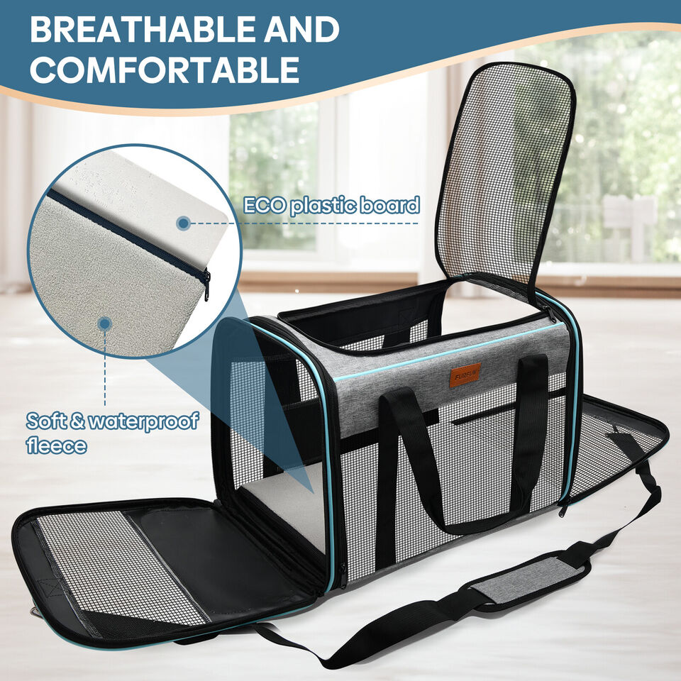 BREATHABILITY EXPANDABLE PET CARRIER - Mesh on 4 sides including 2 expandable sides allow for your pet to breathe easily and have a full view from inside. Up flap over the top mesh opening can help to reduce your pet’s anxiety and discomfort, encouraging rest while traveling.